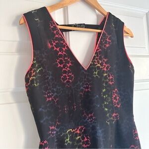Sandro Paris Mini Cocktail Dress. Black neon animal like print. Neon pink, green, blue side hidden zipper. Side slits. Super flattering. Worn by Coleen Rooney