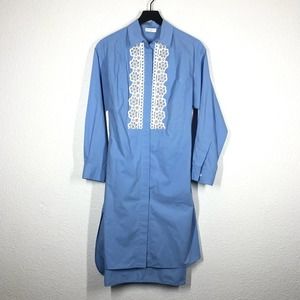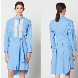 Sandro Paris Blue Cox Poplin Lace Shirt Dress Long Sleeve Button Down 38 M