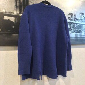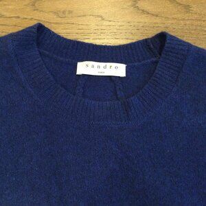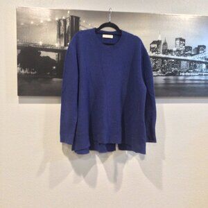 Sandro Paris Blue Wool A Line Slits Crew Neck Sweater 100% Wool Tunic