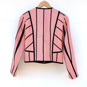 Sandro Paris Boucle Lady Jacket Linen Cotton Pink 38 Size 6 Preppy Chic
