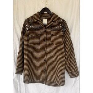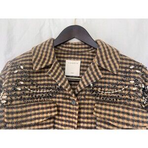 Sandro Paris Brodan Beaded Plaid Check Coat Wool Blend Button Front EU 38 US 6