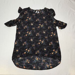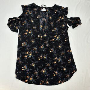 Sandro Paris Cold Shoulder Top Women 1 Small Black Floral Keyhole High Low