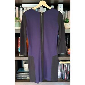 🐿️ Sandro Paris Color Block Blue & Black Half Sleeve Stretch Fitted Dress 1 SM
