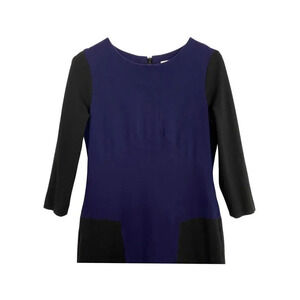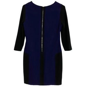 Sandro Paris Color Block Dress Sz 8 Womens Blue Black Half Sleeve Stretch Fitted