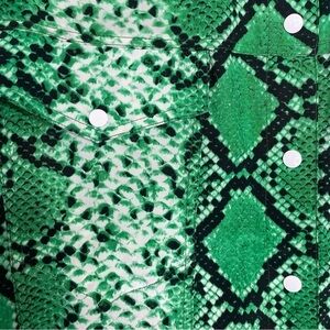 sandro paris python blouse, silk snake print shirt, sandro green silk top, designer animal print button down