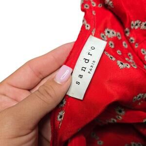 Sandro Paris Cyrielle Blouse in Red Print Silk Size: 3