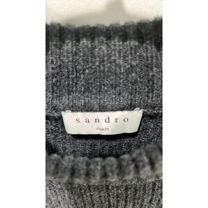 Sandro Paris Embellished Ribbed Wool & Cashmere Long Sleeve Gray Mini Dress US 2