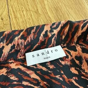 Sandro Paris Evie Leopard Print Silk Twill Shirt in Pastel Orange