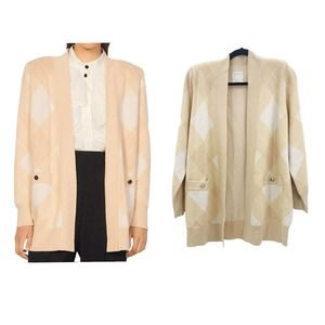 Sandro Paris Glenda Argyle Wool-Blend Cardigan Sweater Beige Women's Size 2 /M NWT