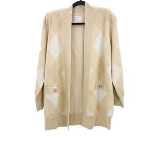 Sandro Paris Glenda Argyle Wool-Blend Cardigan Sweater Beige Women's Size 2 / US 6 NWT