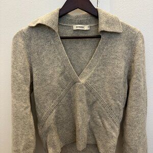 Sandro Paris Gray V-Neck Cropped Sweater