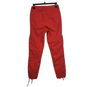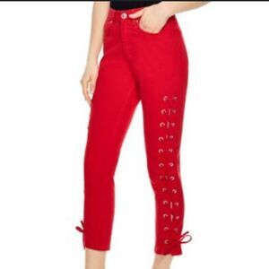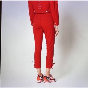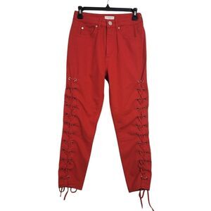 Sandro Paris Hadera Lace Up Jeans Size FR 36 US 4 Red Cotton ASO Riverdale