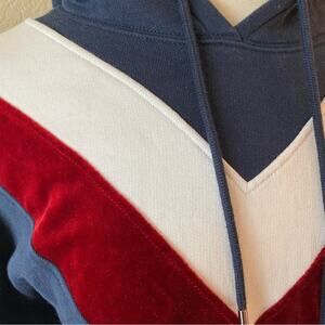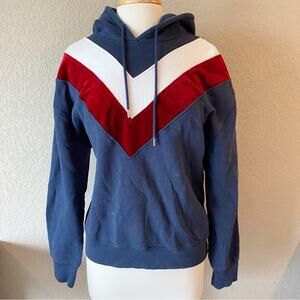 Sandro Paris Hooded Sweatshirt With Velvet Insert In Blue Size Small