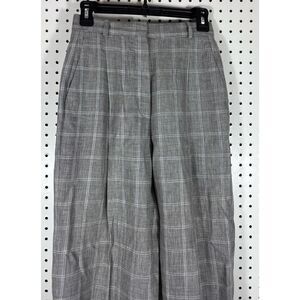Sandro Paris Hoviv Wide Leg Linen blend Pants Woman’s Gray Plaid size 36 measures as S