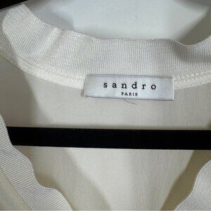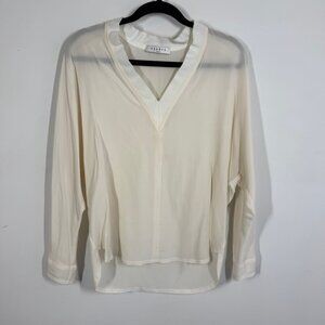 Sandro Paris Ivory Silk Blouse Size M Long Sleeve Minimalist V Neck Top