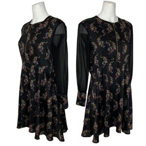 This Sandro Paris women's Kaiya Tiger Print Dress makes a statement due to it's sheer long sleeves, button cuffs, zip front bodice, fit & flare silhouette, mini hem and black tiger novelty design.