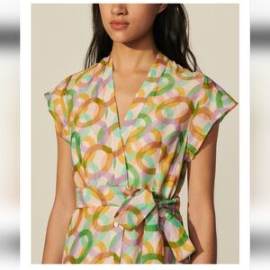 Stunning linen and silk Sandro Paris Midi dress. Worn once in great condition. Retail price $540.00. Has a beige slip insert and Size 36, which is equivalent to a US size 6.