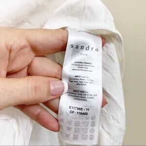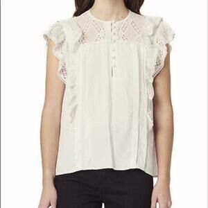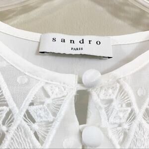 Sandro Paris Marka Lace/Embroidered Ruffle Short Sleeve Cream Top