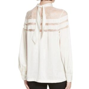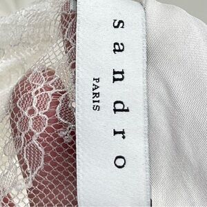Sandro Paris Mirtylles White Floral Lace Viscose Satin Blouse Size Small