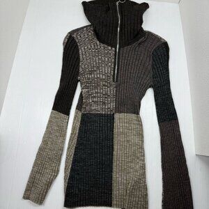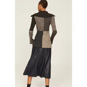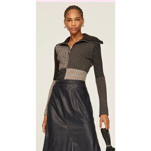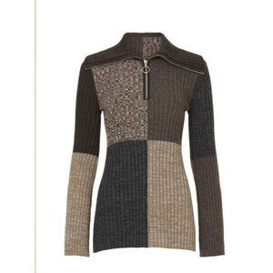 Sandro Paris Moria Sweater Size 3 US L Colorblock Rib Knit Zip Collar Pullover