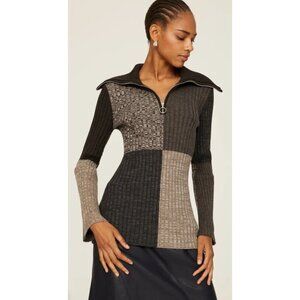 Elevate your wardrobe with this chic Sandro Paris Moria Sweater, crafted in a striking colorblock design of gray, beige, and black tones. Featuring a rib knit texture, a stylish zip collar neckline, and a slim flattering fit, this piece is perfect for modern layering or as a standout top. The high-quality knit ensures comfort, structure, and style—ideal for pairing with trousers, denim, or skirts.