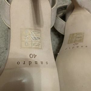 Sandro Paris NEW Suede Stiletto Sandals Nude FR 40 US 9 Chain Ankle Strap Heels.