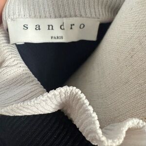 Sandro Paris Navy Blue Ribbed Ruffle Turtleneck