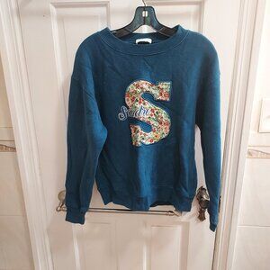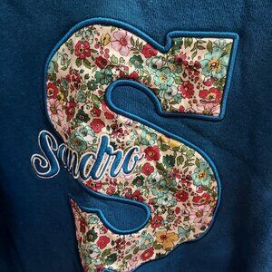 Sandro Paris Paulo Floral Blue Varsity Pullover Sweatshirt