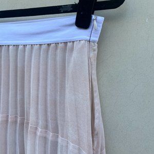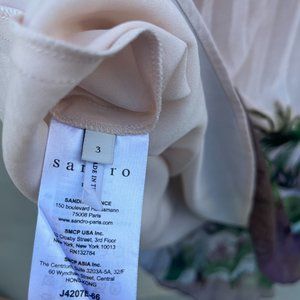 Sandro maxi skirt with tropical pattern on pleated skirt.Features concealed side zip closure and elastic waist band and inner skirt lining.