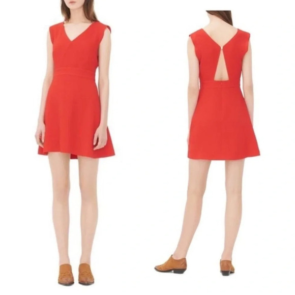 Sandro Paris Red Sleeveless V Neck Fit & Flare Dress Size 1 US S