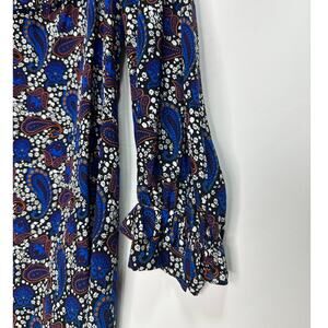 Chic and timeless, this Sandro Paris paisley silk shift dress blends bohemian charm with Parisian sophistication. Crafted from 100% silk in a striking blue paisley print, it features a relaxed silhouette, long sleeves with gathered cuffs, and a keyhole back detail. Perfect for day-to-night wear — pair with boots, heels, or flats for effortless style.