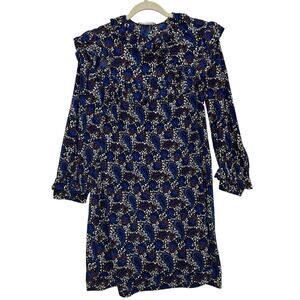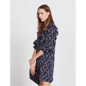 Sandro Paris Silk Paisley Mini Shift Dress in Blue Print Size 2