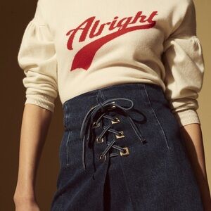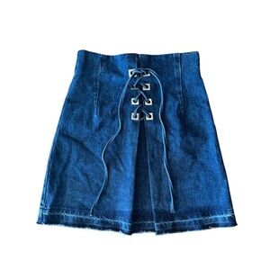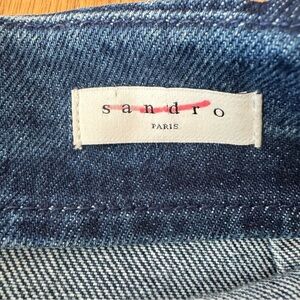Sandro Paris Size 1 Small Denim Skirt With Metallic Details Blue Back Zip