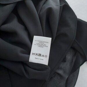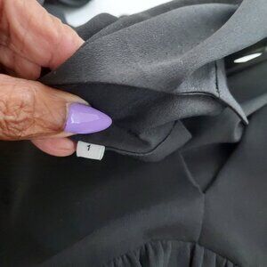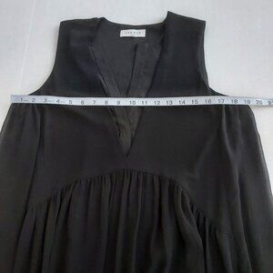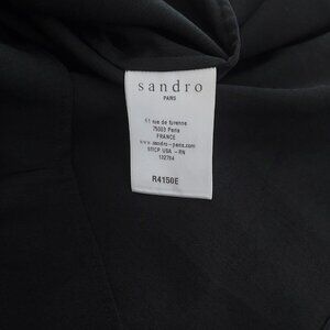 Size small Sandro Paris Sleeveless V-Neck Mini Black Cocktail Dress. 100% polyester. Sheer with black lining. Loose fit. Snap at placket. Pleated accents. Double side slits at hem. Pit to pit 19" Length 33.5". Excellent pre-owned condition
