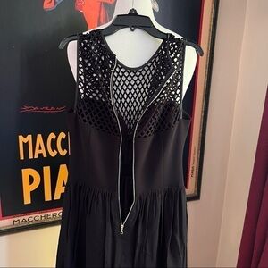 Sandro Paris Solid Black Lattice Cut Top Exposed Zipper Dress EU Size 1 (Small)