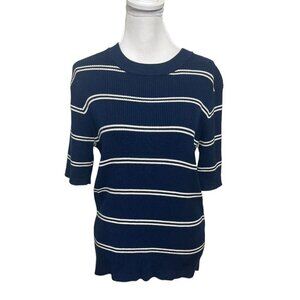 Sandro Paris Stripe Wool Blend Keith Crew Pullover Women’s Size Small Blue Sweat