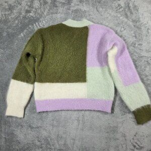 Sandro Paris Sweater Womens Medium Colorblock Mohair Blend Cream Purple Green