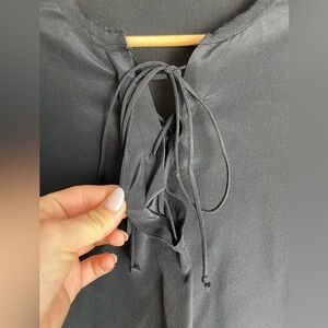 Sandro Paris Vibration Noir Silk Lace Up Blouse Size