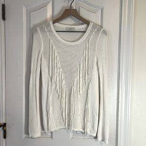 Sandro Paris | White Fringe Open Knit Sweater Size 1/small Western Festial Boho