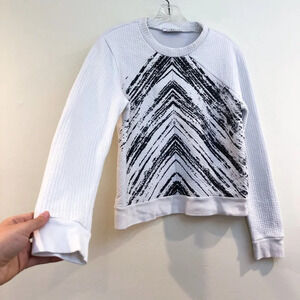 Sandro Paris White Graphic Chevron Printed Slim Crew Neck Pullover Sweatshirt M