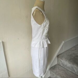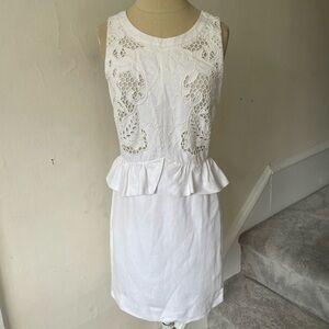 Sandro Paris White Linen Cotton Ruffle Peplum Crochet Accent Sheath Dress EUC 1