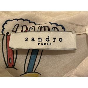Sandro Paris White Silk Graphic Button Up Shirt Blouse Top Women's Size 2
