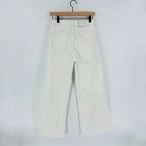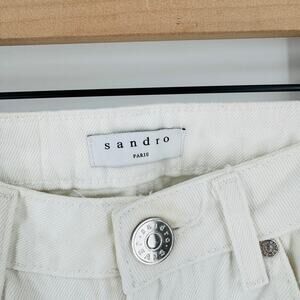 Sandro Paris Wide Leg Jeans Raw Hem Cream Denim High Rise Cotton Pants Size 36