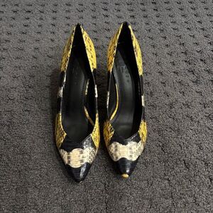 Sandro Paris Women Snake Print Python Pumps Heels Size 37 EU Yellow Black