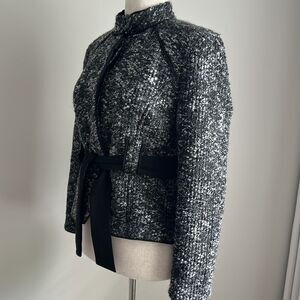 Sandro Paris Women’s Boucle Tweed Jacket Black/Gray Size Large Petite Office