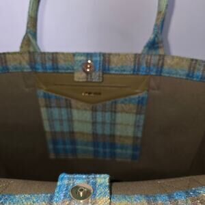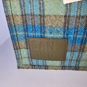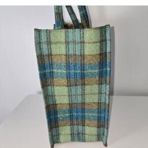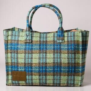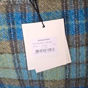 Sandro Paris Wool Tartan Plaid Large Tote Blue Green Snap Top Handle Bag NWT