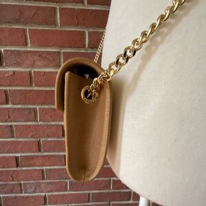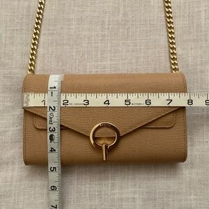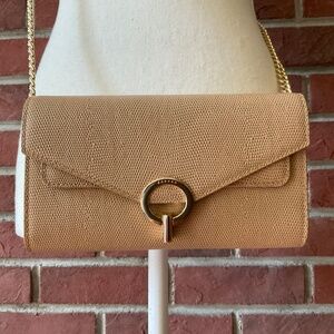 Sandro Paris signature YZA leather bag, beautiful beige ,calf leather textured finish, gold-tone hardware, envelope style, fold over top.