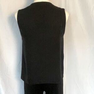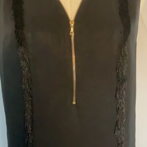 Sandro Paris black silky feel sleeveless top with vertical fringe detailing. Zippered front so you control the reveal 😉 Go from the office to a night out with just a small zip.