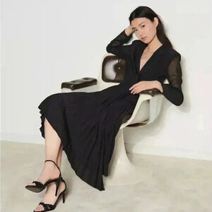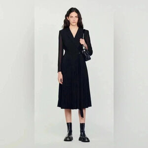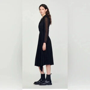 Tags: Sandro, dress, black, sheer, pleated, midi, lbd, Paris, elegant, classy, minimal.autumn, fall