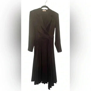 Excellent condition, no notable flaws. Long sheer sleeves, asymmetrical skirt, crossover tailored collar fastened with a button. Dry clean only.